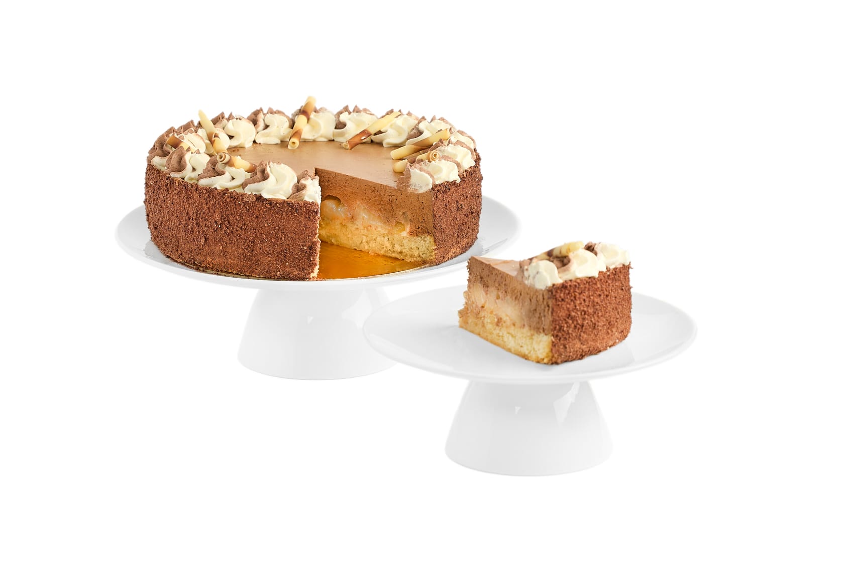 Skład: Gruszki w syropie (gruszki, cukier, sok z cytryny, goździki), śmietana 30% (śmietanka, karagen E407), (jaja, mąka pszenna, cukier, proszek do pieczenia (wodorowęglan sodu, mąka pszenna, substancje spulchniające: pirofosforan dwusodowy)), czekolada gorzka (cukier, miazga kakaowa, tłuszcz kakaowy, emulgator: lecytyny (soja), ekstrakt waniliowy), żółtka jaja kurzego, cukier, woda, żelatyna.