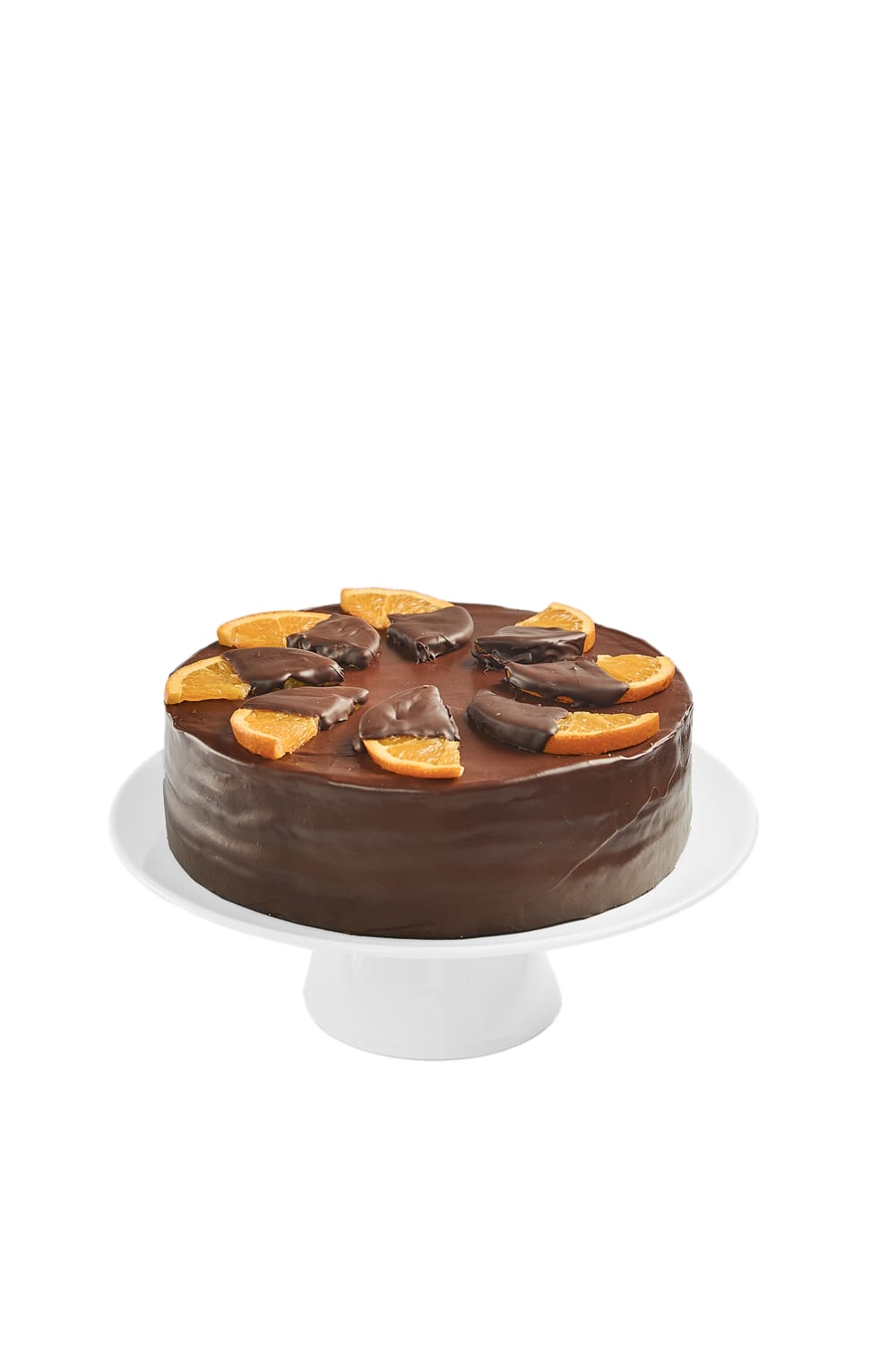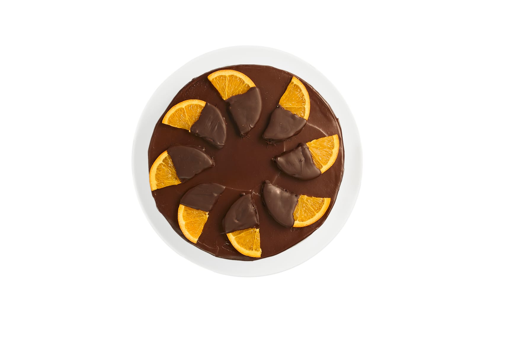 Piernik przełożony marcepanem i powidłami śliwkowymi, oblany czekoladą i udekorowany kandyzowaną pomarańczą. Wersja dla tych, którzy nie lubią kremu 😉